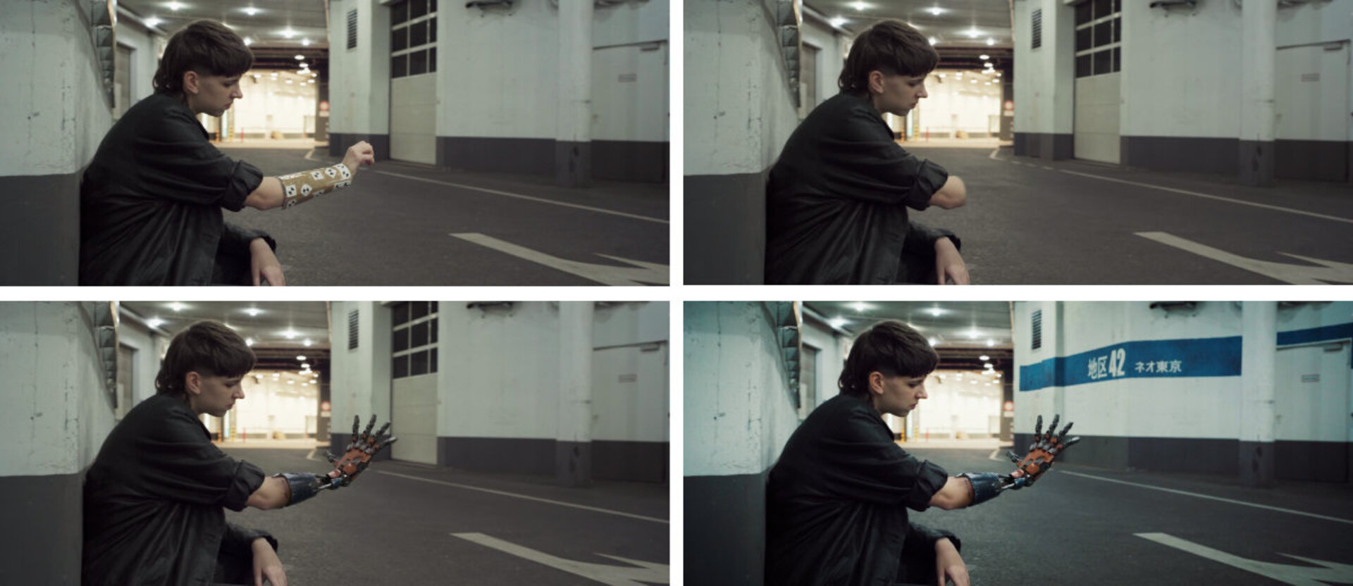 Schließlich entschied ich mich, erneut von vorne anzufangen. Dieses Mal konzentrierte ich mich darauf, einen Shot zu gestalten, wo der Roboterarm im Fokus steht. Ich plante die Kamera und Performance im Detail, suchte eine bessere Location aus und drehte tagsüber. Diese Version funktionierte endlich.
